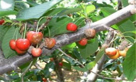 櫻桃褐腐病又叫菌核病、灰腐病等??汕趾?、葉、枝梢和果實,但以果實受害最重。果實從幼果至成熟果均可發(fā)病,以近成熟果發(fā)病較重。