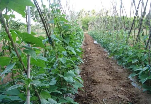 方法是:先在蕓豆行間播種芫荽﹑油菜、水蘿卜等,地溫達(dá)8℃以上時播種蔓性蕓豆。蕓豆插架后生長到半架時,速生菜收獲完畢。