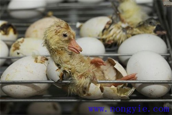 雛鵝開始出殼時(shí),需注意保持和增加水分,防止卵膜干燥粘在鵝毛上,從而導(dǎo)致孵化失敗。