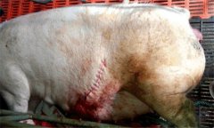 產(chǎn)后母豬體溫升高至41℃,常臥地不起,四肢末端及耳尖發(fā)冷,泌乳減少,呼吸加快,有時(shí)陰道中流出帶血味分泌物,并出現(xiàn)不食或少吃。
