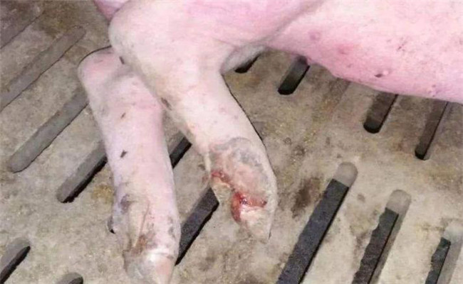 主要表現(xiàn)蹄冠、蹄踵、副趾及蹄中溝等出現(xiàn)病變,鼻盤、口黏膜、唇、齒、齦、舌、咽、乳頭、陰戶和陰囊等處出現(xiàn)水皰,病初比較少見,體溫升高至40℃~41℃,精神不振,吃食減少或不吃,當(dāng)水皰破裂后,表面出血、糜爛,發(fā)生跛行,嚴(yán)重時(shí)蹄殼脫落,成豬如果不感染其他病,一般為良性經(jīng)過,病豬水皰能較快痊愈。